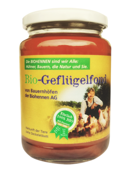 Das Fleisch unserer Bio-Legehennen aus artgerechter, ökologischer Tierhaltung wird schonend gekocht um alle wertvollen Nährstoffe zu erhalten. Zutaten wie Gemüse und Kräuter aus regionaler, kontrolliert ökologischer Erzeugung verfeinern beim handwerklichen Herstellungsprozess noch zusätzlich den Geschmack des Fonds. Eine natürliche, fettfreie Basis für Ihre Gerichte von ausgezeichneter Qualität, ohne künstliche Zusatzstoffe und Aromen.