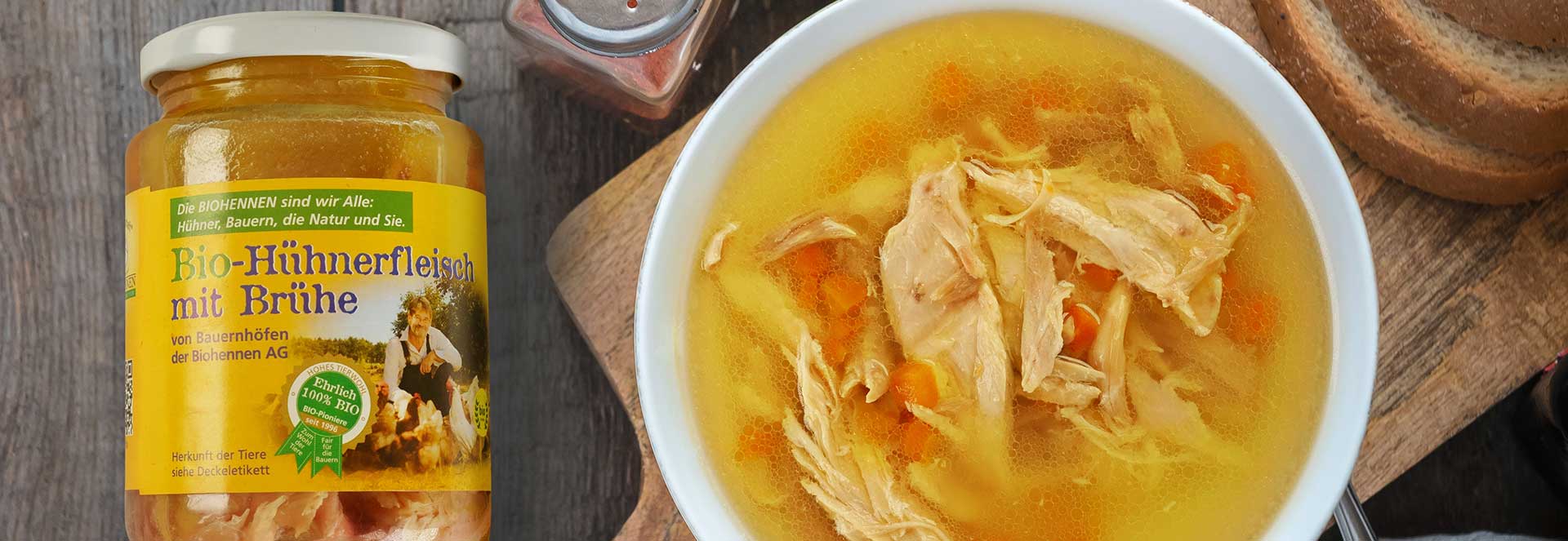 Ganz pur - unsere Bio-Hühnerbouillon im Glas